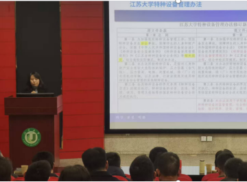 李艳肖副处长围绕《江苏大学特种设备管理办法》修订内容、仪器设备合同管理平台建设情况以及2026年资产配置申报、查重评议、设备更新项目等重点任务进行了解读与提醒。她强调,各部门应严格遵守资产配置预算规定,加强大型仪器设备购置论证,确保资源合理配置与高效利用。